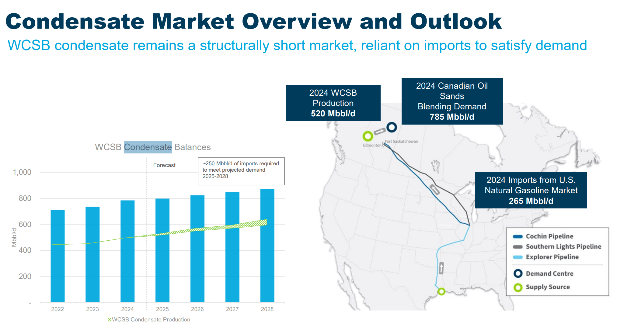 Western Canada’s condensate outlook remains robust. Condensate is used to dilute the bitumen produced in the oil sands, and recent growth in production has driven sharp increases in demand. As shown below, continued expansion will keep demand rising.
