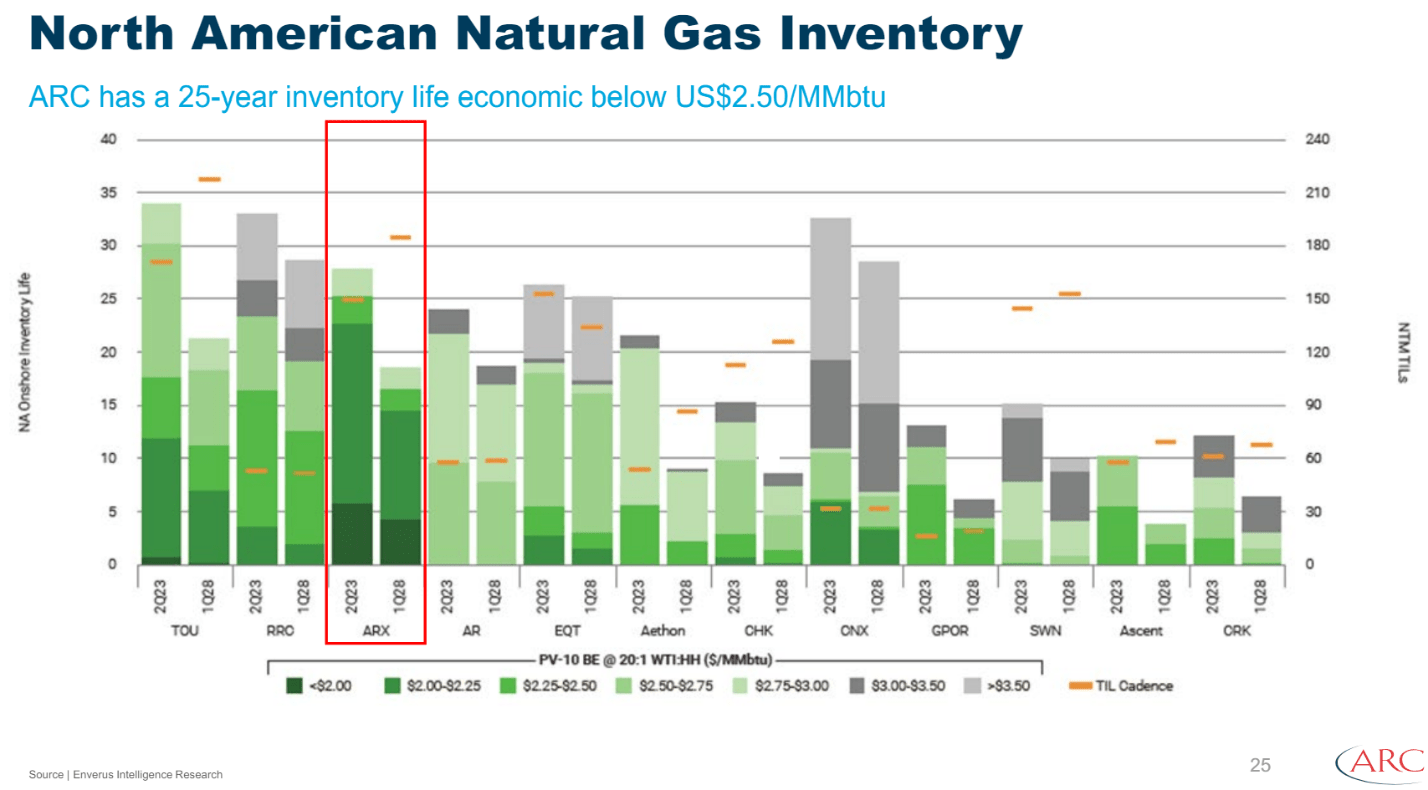 ARC’s unmatched inventory profile has enabled it to press ahead with growth even as many of its peers curtailed production in response to low gas prices. For instance, ARC did not curtail production at its Sunrise dry gas asset despite extraordinarily depressed AECO pricing because the asset’s economics could withstand the low prices.