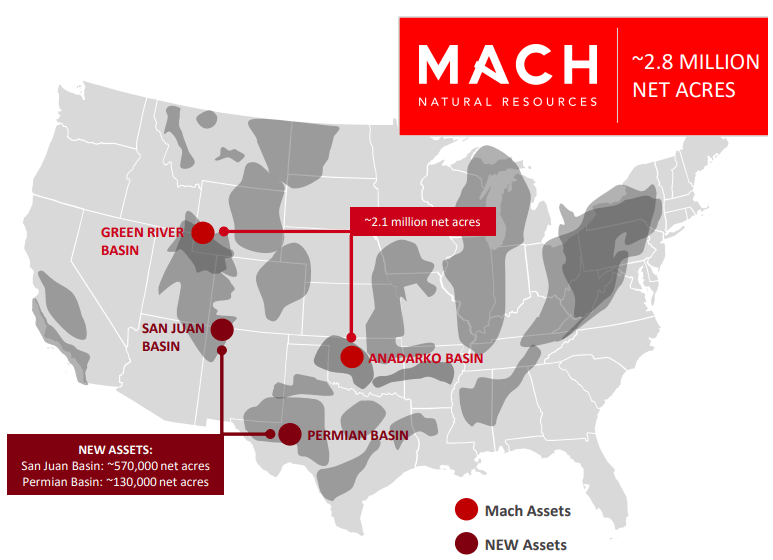 The third-quarter acquisitions fundamentally transformed MNR’s asset portfolio. The assets expanded the company’s operating footprint into two new basins, the San Juan and Permian, as shown below.