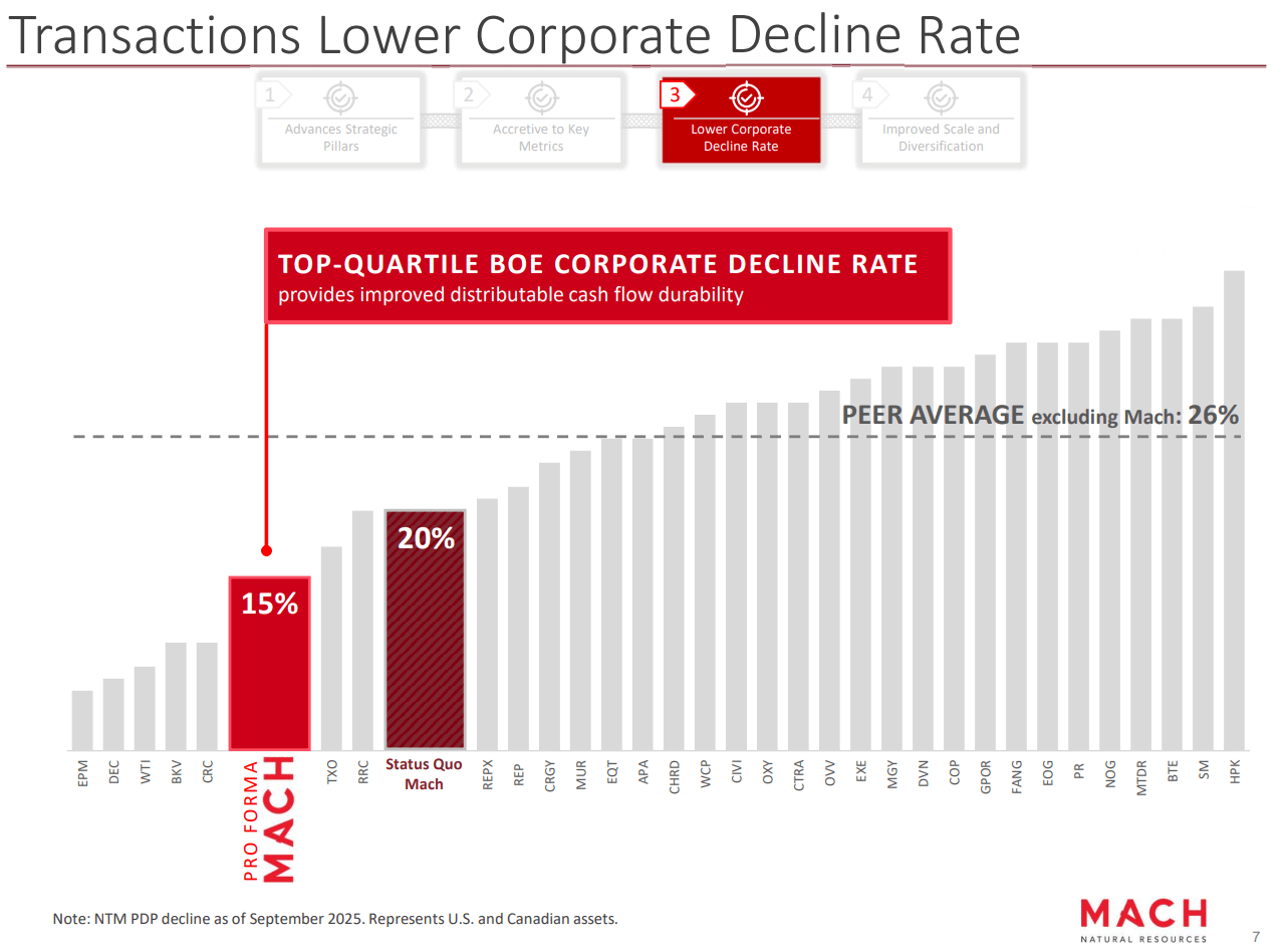 MNR’s low decline rate is a key part of its investment thesis. The rate is well below that of most peers, as shown below.