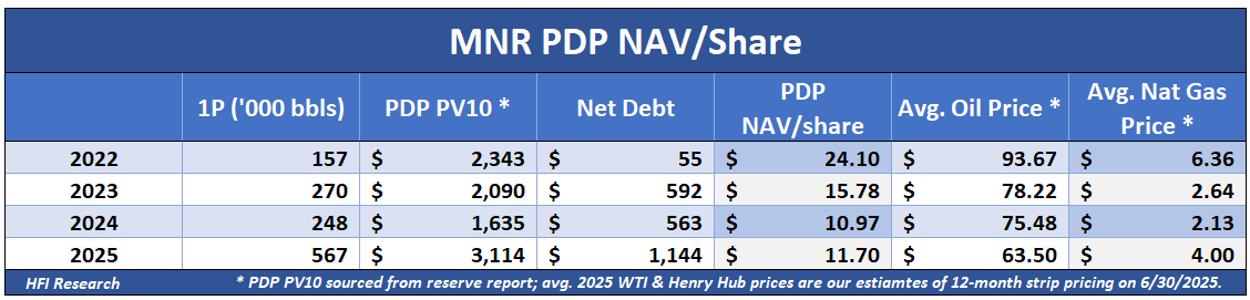 The upshot of MNR’s legacy production is that the underlying trends are consistent with management’s guidance for a PDP decline rate in the mid-teens percent.