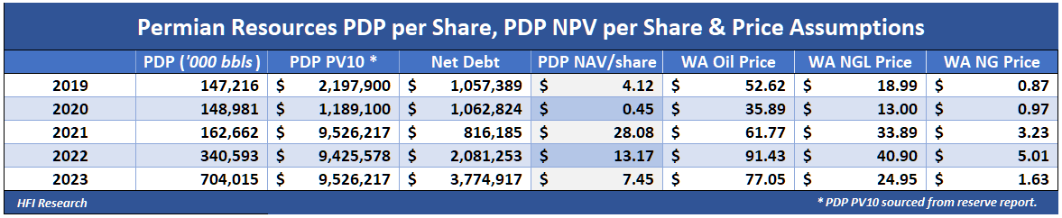 PR’s net asset value per share took a beating after the significant share issuance that funded its Earthstone acquisition. NAV per share will improve as the company pays down its debt over the coming quarters.